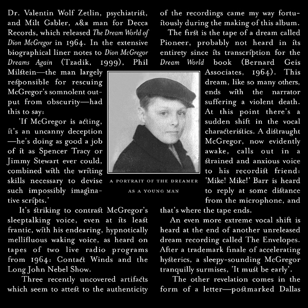 THE FURTHER SOMNILOQUIES OF DION MCGREGOR More Outrageous Recordings of the World's Most Renowned Sleeptalker (Lliner Notes 2)