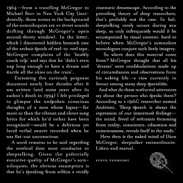 THE FURTHER SOMNILOQUIES OF DION MCGREGOR More Outrageous Recordings of the World's Most Renowned Sleeptalker (Liner Notes 3)